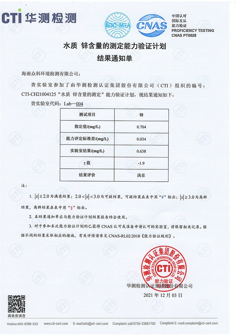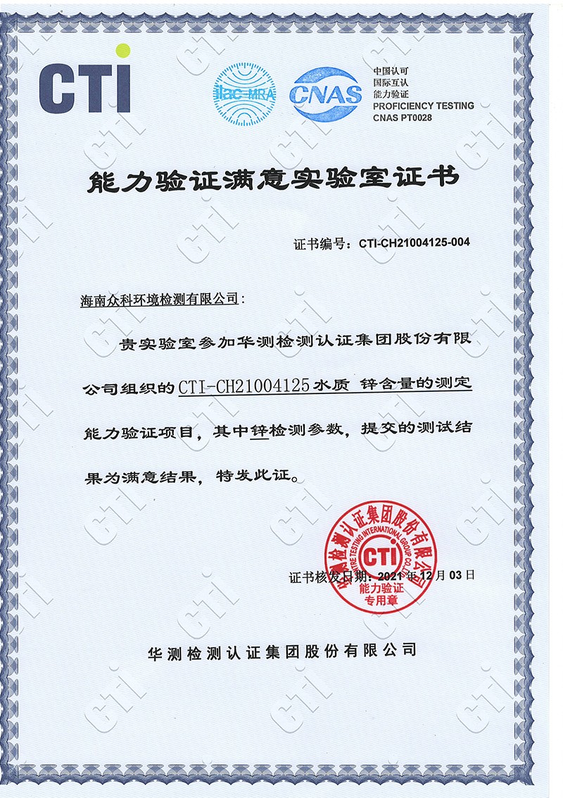 能力驗(yàn)證滿意實(shí)驗(yàn)室證書(shū)