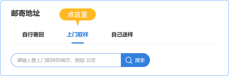 如果您需要上門取樣服務(wù),眾科檢測平臺下單時,請選擇上門取樣服務(wù)并輸入上門取樣的城市即可,上門取樣人員會與您聯(lián)系,無需快遞,其他市縣需要郵寄。