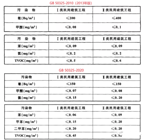 (1)增加了室內空氣中污染物種類。GB 50325-2010(2013年版)中室內空氣污染物有5種(氡、甲醛、苯、氨、TVOC),本標準在GB 50325-2010(2013年版)的基礎上增加了甲苯和二甲苯,合計7種。